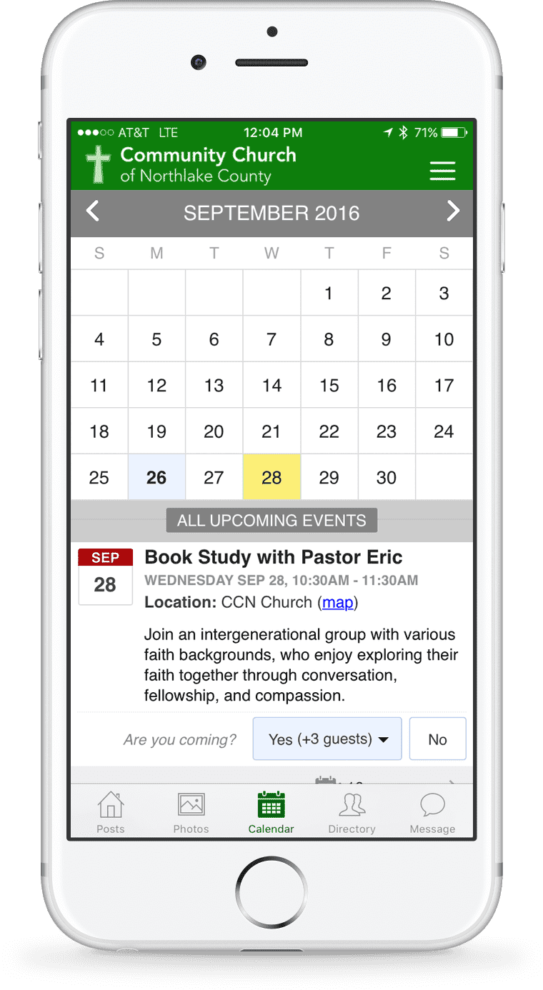 Increase attendance with automatic reminders for all events. Your app's calendar can sync automatically with other calendar systems, too.