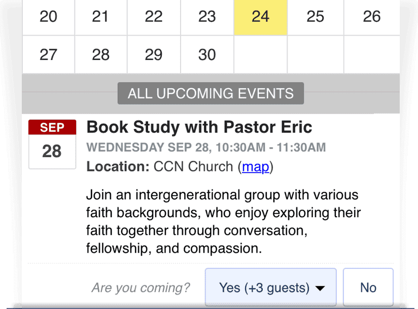 Calendar SyncingAutomatically import your events from iCal or Google Calendar sources |