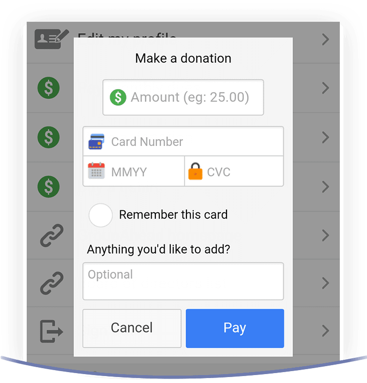Allow your members to pay membership dues, make donations, cover event fees - or pay for anything at all.