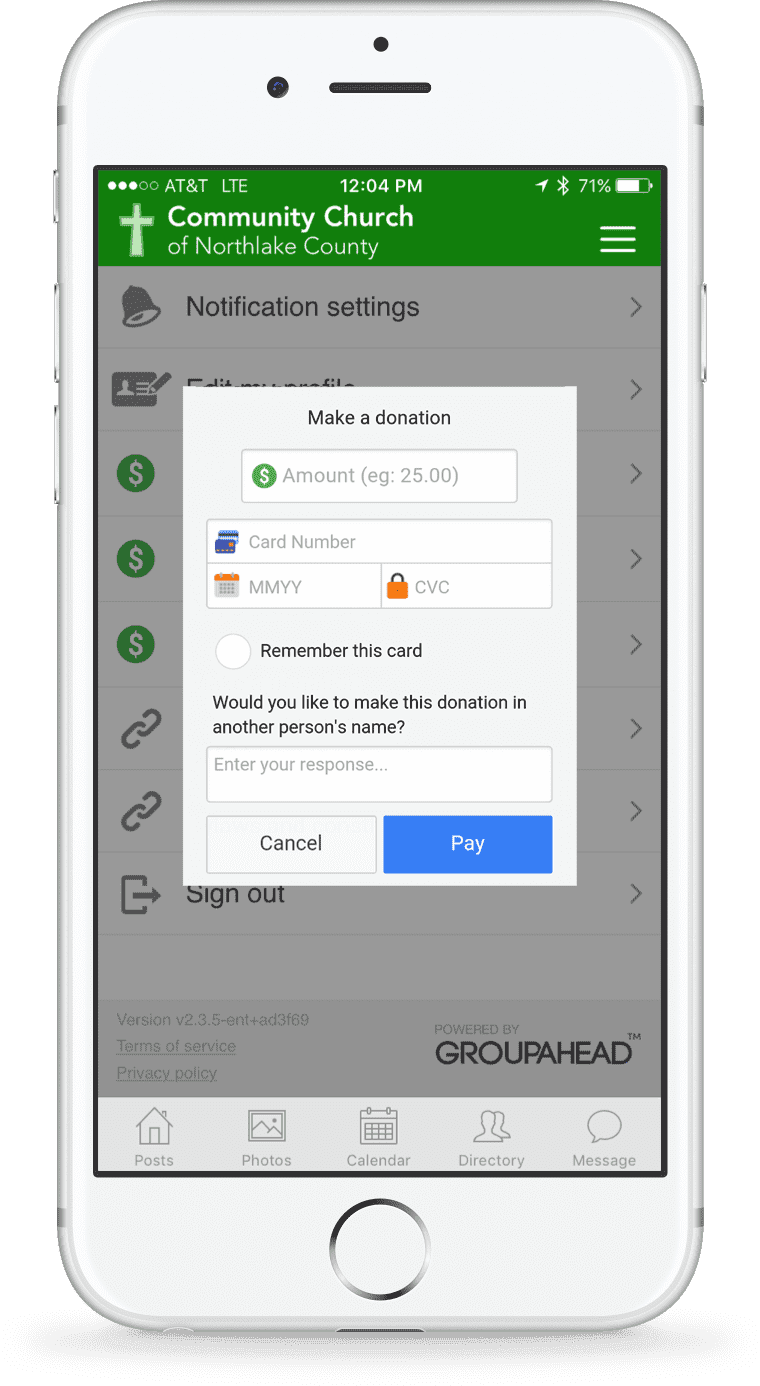 Collect donations directly within your app. And members can save their card to make future donations instantly.