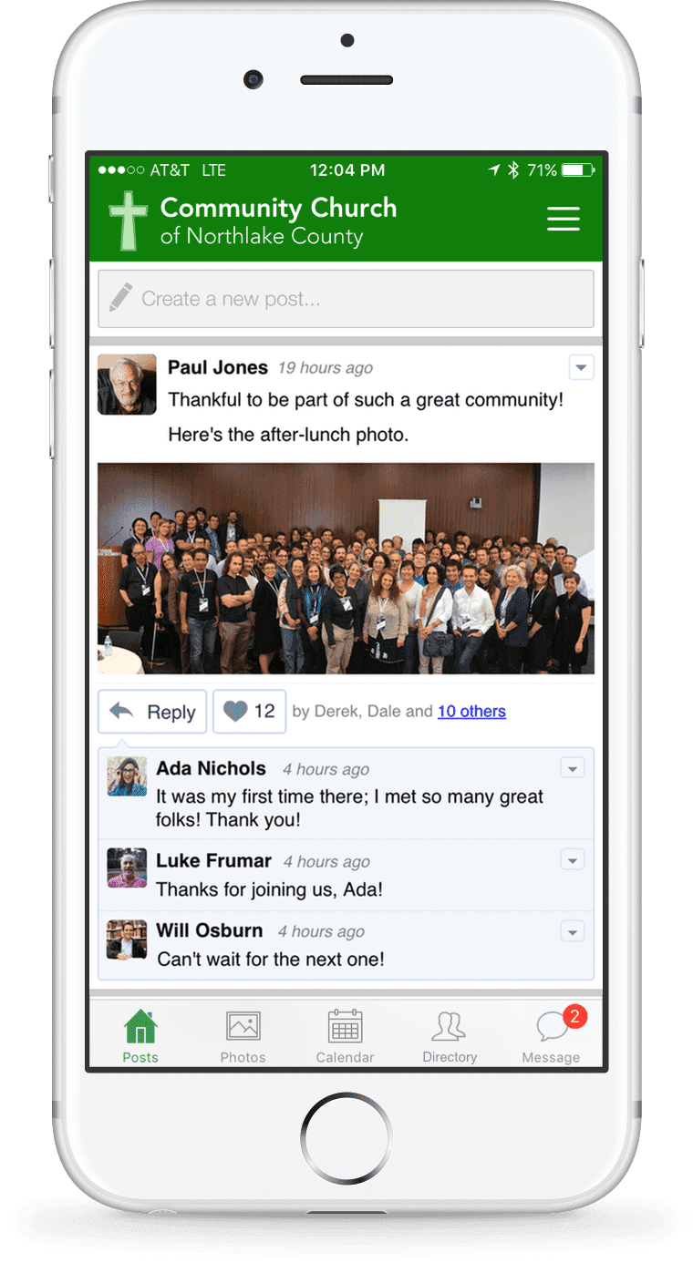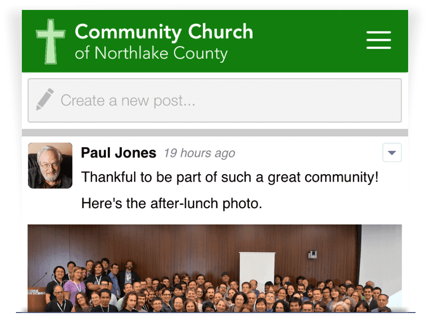Engage your congregants daily with a place for announcements, prayer requests, social engagement, and more.